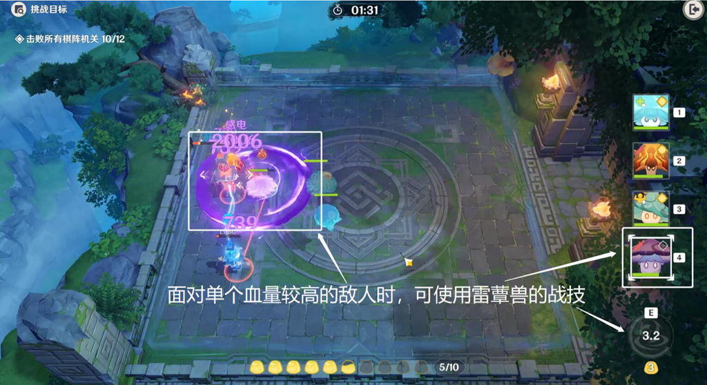 面对单个血量较高的敌人时可使用雷蕈兽的战技。