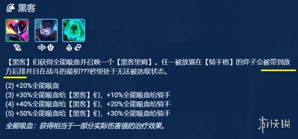 另一方面这套阵容不怕黑客体系,阵容搭配2黑客羁绊,在遇到黑客体系阵容的时候薇恩可直接飞敌方后排,直接对敌方后排造成威胁,在搭配装备科技枪刃高攻击力下带来的高续航下除非被连环控制,否则很难被击杀。