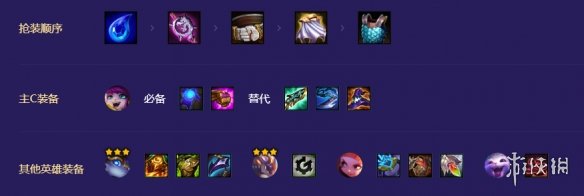 阵容最好有小天才转职,能在中期开出五小天才,攻防两端质量大幅度提升; 防装优先给波比(好三星)。