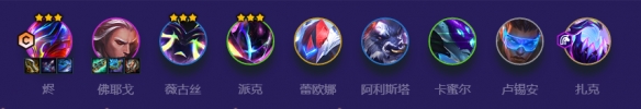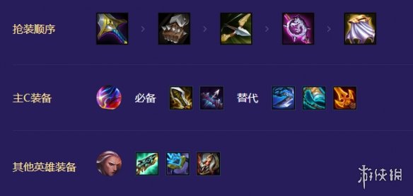 副C佛耶戈必备海克斯科技枪刃和离子火花,这里的薇古丝由于不享受混沌战士的加成,因此只能作为辅助位;