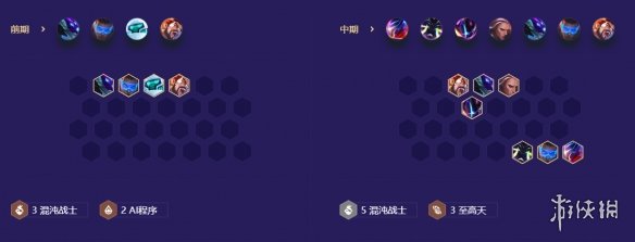 后期如果有混沌战士转职可以开七混沌战士,如果担心前排坦度不够也可以下五混沌战士上三战斗机甲。