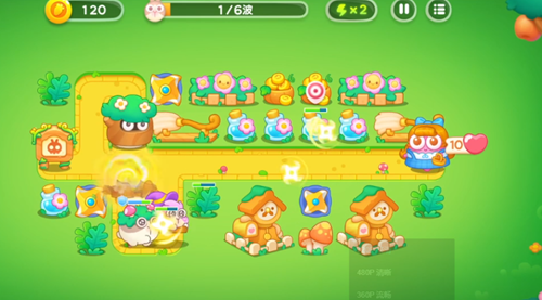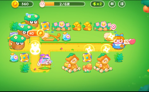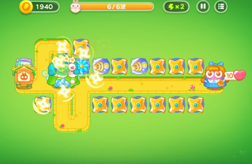 3、第三波是建立四个,进行升级下面的一个这样就能快速的清理掉兔子。