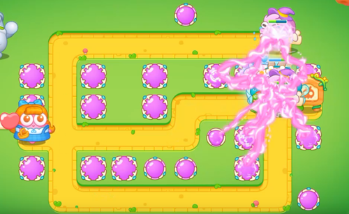 6、继续摆放魔法球这时候是会出现新的角色的,是铁皮兔我们是要快速的来清理掉的。