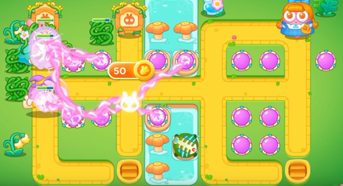 2、第二波来的时候增加魔法球的数量对其进行升级,来攻击兔子。