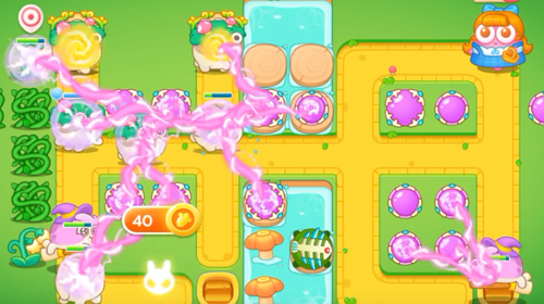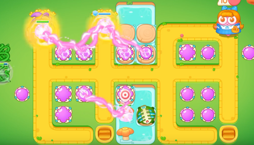 9、最后一波来的时候是先进行攻击中间下方的鱼清理完成之后就开始攻击兔子。