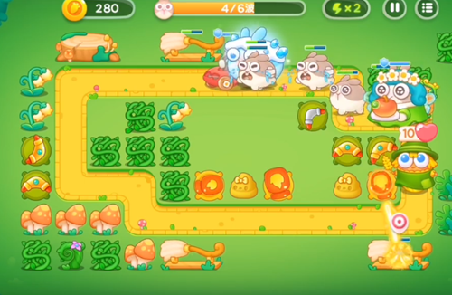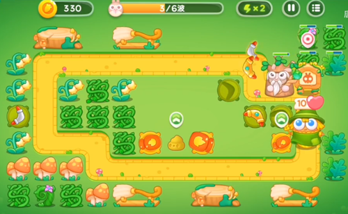 5、这一波是中间的火瓶子都已经升级完毕,用新道具来攻击下面的蘑菇。