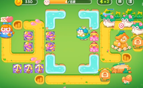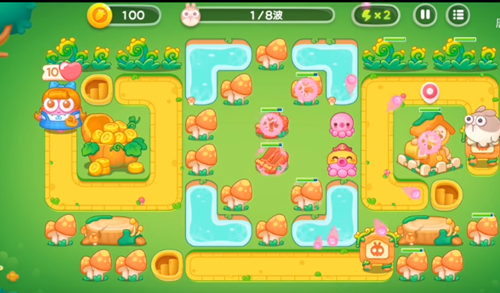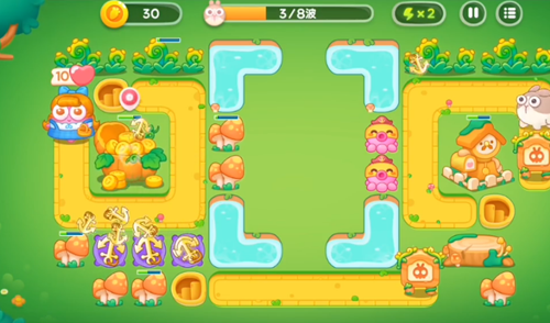 1、这一波首先是要摆放上两个章鱼炮的,之后就进行攻击中间的蘑菇。