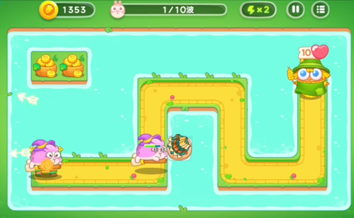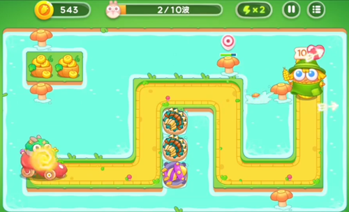 5、继续在中间增加导弹塔,有金币就进行升级。