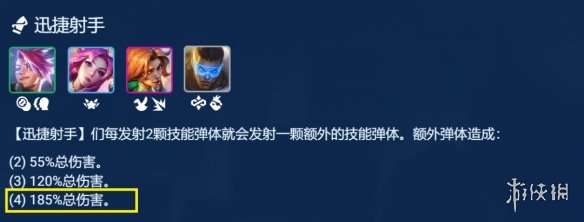 而迅射羁绊给卢锡安带来的收益会更高,只要开2/3/4迅射羁绊,卢锡安每次技能就能额外发射2枚子弹,且额外子弹的伤害还能获得最高185%的伤害,这就再次大幅度提升卢锡安的输出能力。