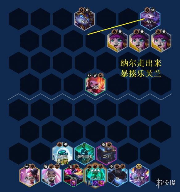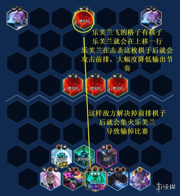 另一方面敌方解决掉我方第一枚棋子后就会集火乐芙兰,进而输掉比赛。