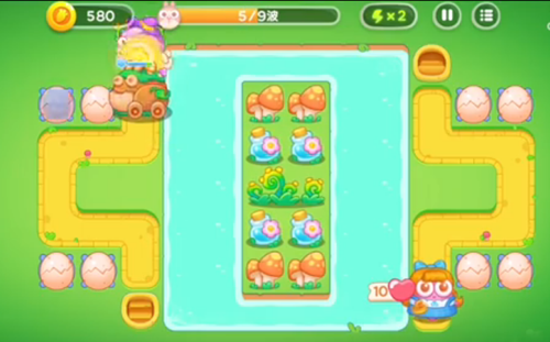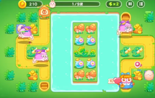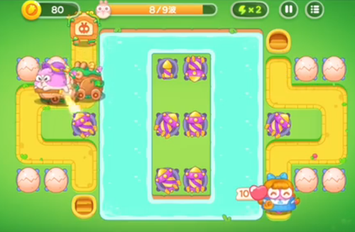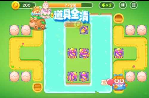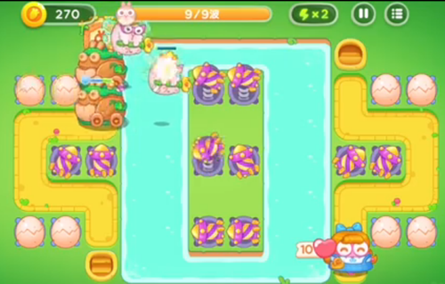3、持续增加注意摆放位置,兔子和障碍物是一起进行攻击的。