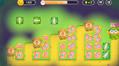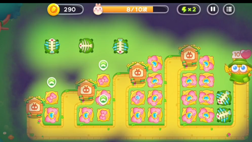 7、这一波的时候是道具全清了,每一个框内的塔炮数量是不一样的。