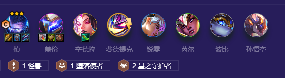 4-1拉7大搜6护卫双慎,没双慎就挂个龙王/卡莎到后排,两个2星就可以上9了,不要去追3星。