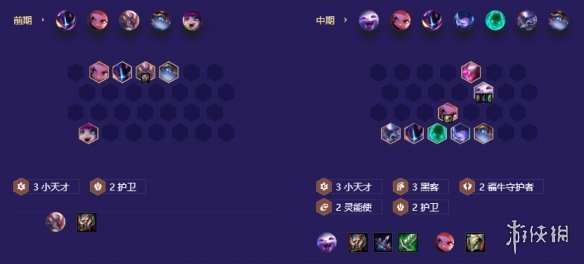 前期不拉人口,3-2升6人口,6级小搜(金币不要少于40),组【3黑客+3小天才】,主要找两星【纳尔】和两星【安妮】,【派克】、【波比】能两星最好,然后存金币,升人口,7级上【阿利斯塔】,不搜牌,升8级,上【艾克】,8级大搜一波提质量,【两星慎】、【两星乐芙兰】,然后搜三星【纳尔】。9级补【辛德拉】。有【努努和威朗普】,上【5小天才】,有【小天才纹章】,留【阿利斯塔】不要【璐璐】。 6级3费卡的概率和7级只差5%,6级阵容小成之后,能打大部分未成型的阵容,打一个强度差,可以保血量上人口。