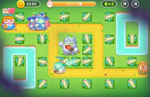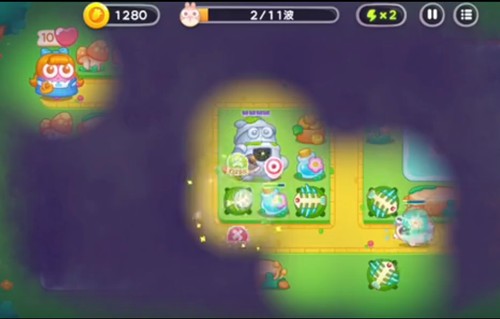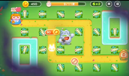 2、持续的增加数量并进行不断的升级,来攻击障碍物和兔子。
