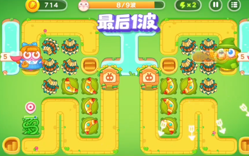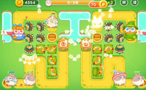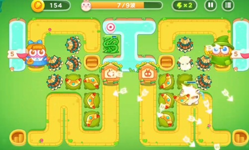 3、放上左右各三个绿塔炮,两边增加多重箭。