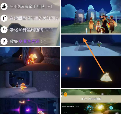收集紫色光芒:紫光在禁阁一层右侧两人门内,进图动画结束后会在右侧出现