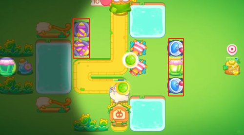 5、蘑菇和炮台都是随意的,火箭是要多摆放的,最后是一只冰冻大兔子,打完就能获得金萝卜。
