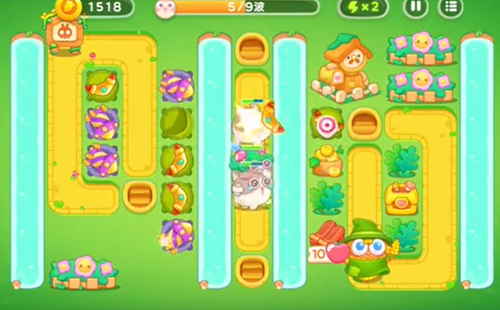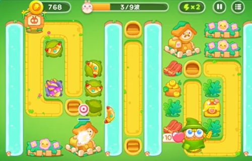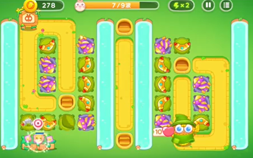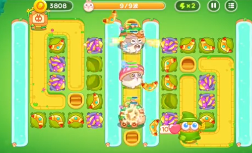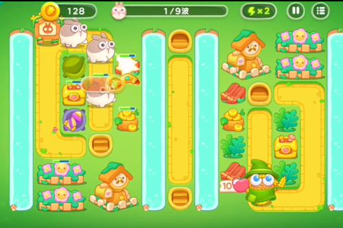 5、左右两边夹击攻击障碍和兔子,有钱级进行摆放绿塔炮。