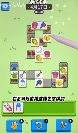 4、游戏中有三种道具可以使用,每种道具同一局游戏只可使用一次,最左边的道具是移出道具,可以移除三张牌并把它们堆放到旁边。