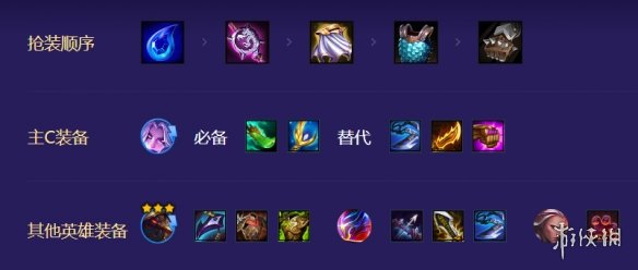优先找到莫甘娜的青龙刀以及拉莫斯的反甲龙牙,随后补齐拉莫斯和莫甘娜的装备,佛耶戈带偷偷,烬负责捡多余的物理装备。
