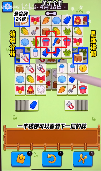 3、之后就是主要消除楼梯,后期搭配盲盒区和悬空区的消除掉就可以,下方区域的卡牌可以最后再去消除。