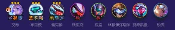 前期走连败,只留艾希、雷克顿、布里茨并且不拉人口,3-1大D找出艾希、雷克顿、布里茨的三星然后找出希维尔以及亚索的两星。