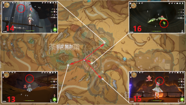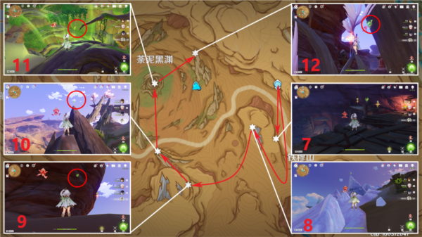 (9)位于半山腰处,我们借助「花灵」移动四叶印位置,就能飞过去获得神瞳了