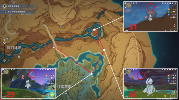 (6)我们来到崖边,从上面飞下来就能看到了(或者借助「花灵」移动四叶印位置,就能飞上去了)
