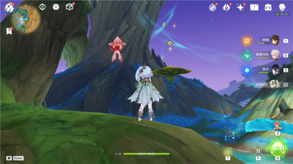 (29)神瞳在高空中,我们操控花灵,借助「苦离果」击碎神瞳下方的晶石(里面有个四叶印),再移动四叶印的位置,同时短E花苞使其展开,就能飞上去了