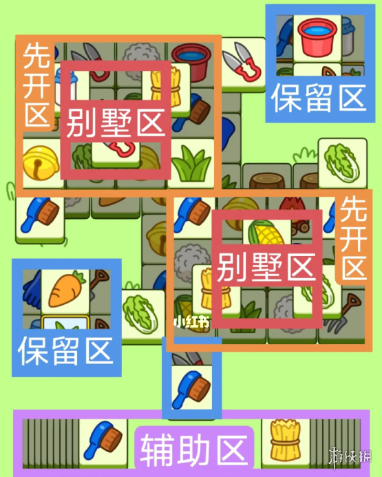 3.必要时可以用紫色盲盒区辅助消除,盲盒区后期不用留太多,留几张备用即可。