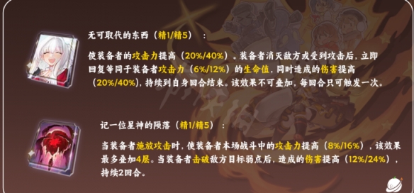「克拉拉」的专属光锥,增加攻击力,并且消灭目标与受击均增伤与回复生命值,再加上额外能力【童真】也能回复生命值,大大提升了