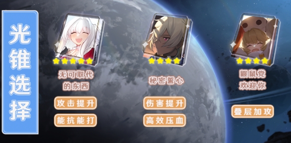 光锥【无可取代的东西】可以直接提高阿兰的攻击力,当阿兰受击或消灭敌人时会回复血量并获得伤害加成,对于需要控血输出的阿兰而言十分契合。