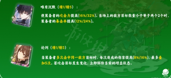 模拟商店兑换的光锥,换取难度不大,还算契合「丹恒」。暴击率提升比专武少点,但是攻击生命值低于50%的敌方,暴击率额外提高,也算是弥补了相对减少的那部分暴击率。