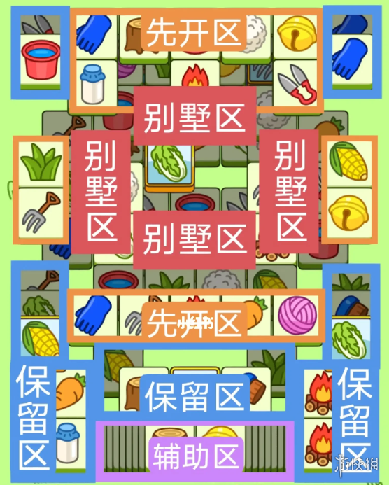 2、可以参考缝隙看牌法探底牌,开局先消除橙色区,这里压牌比较多。