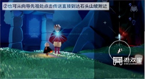 2、也可以从向导先祖处点击传送直达到达石头山坡附近。