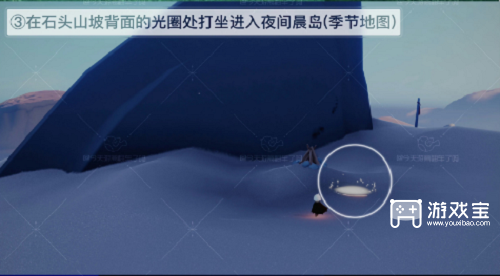 3、在石头山坡背面的光圈出打坐进入夜间晨岛(季节地图)。