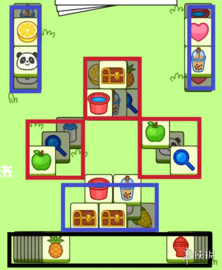 2.前期努力挖中央红色区域,后面的困难层如每图右侧,配合隐藏牌消除