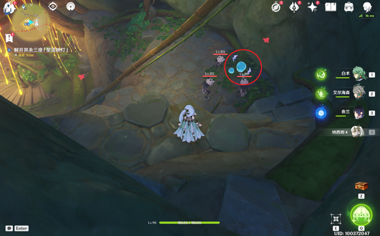 6,在中途可以找到一个幻灵,我们击败旁边的丘丘人,之后跟随幻灵前进