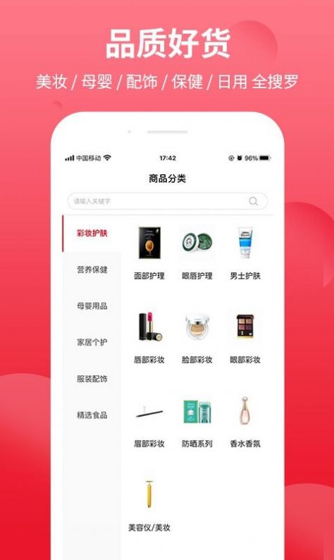 用户可以在平台上购买到各种美妆服饰、服装配饰和营养保健等优质商品,商品货源来自于世界各地不同的国家