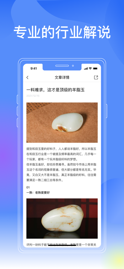 1. 浏览学习:用户可以在软件内浏览各类和田玉知识文章,学习相关知识。