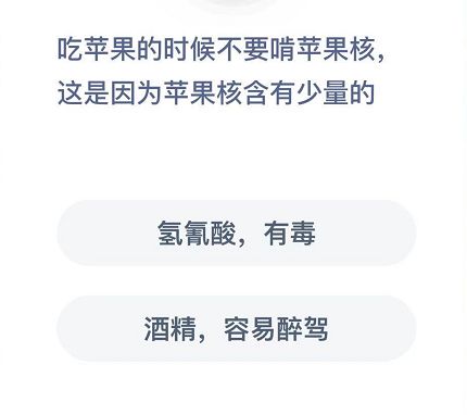 吃苹果的时候不要啃苹果核这是因为苹果核含有少量的?蚂蚁庄园2020年12月11日答案最新