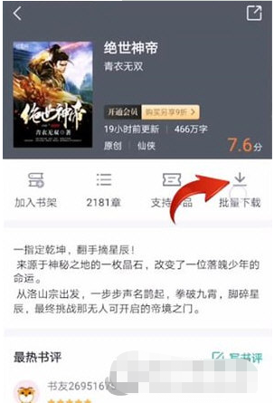 是一款界面美观的小说阅读软件。该软件里面为用户带来了海量的小说,那么怎么在里面下载小说呢?下面小编就告诉你!打开【】APP,点击【书城】,点击要下载的书籍,再点击【批量下载】选择下载章节,点击【立即下载】即可。以上就是小编为大家带来的关于看目录介绍,希望能够对