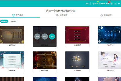文字游戏相信大家都不陌生,主要以文字为载体,在阅读小说的同时,通过简单的按钮带入自己的想法,市面上的文字游戏这么多,那么如何用封面吸引住玩家?下面就跟小编了解下怎么用闪艺完成DIY封面吧。制作封面:1、首先打开闪艺制作工具,在官方模板、共享模板、我的模板中选择