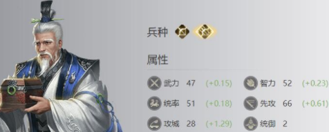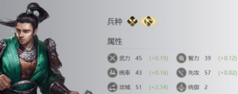 荣耀新三国宋谦怎么样?宋谦技能效果是怎么样的呢?想必一定有很多的小伙伴们都想要提前的了解一下吧,小编已经为大家整理好了,赶紧来看看小编的整理吧,希望可以很好的帮助你解开疑惑!荣耀新三国宋谦培养攻略宋谦武勇兵种推荐:枪兵加点推荐:武力 62.40%智力 0.30%统率 23.01%先攻 14.29%宝物推荐:大环刀、眉尖刀、双头矛、貔貅罐技能效果:对当前目标发动武力攻击(伤害率150%,受武力影响)