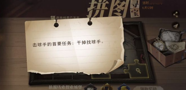 哈利波特魔法觉醒2021年9月16日的游戏活动寻宝击球手在哪里是拼图寻宝的线索之一,很多的游戏玩家对此还不是很了解!那么,哈利波特魔法觉醒寻宝击球手在哪儿?还不清楚的话赶紧来看看小编的整理吧!哈利波特魔法觉醒击球手的首要任务干掉找球手位置在活动页面点击第四行第四个线索,是关于击球手任务的线索,来到对角巷的魁地奇精品店,在楼梯下方的地上拾取黄色的小球,即可获得有关的碎片!1.碎片线索:击球手的首要任