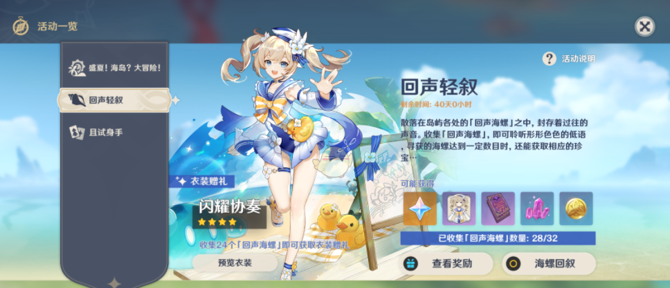 众所周知,原神1.6版本新出了好几个新的活动,其中如果玩家想要获得芭芭拉的新服装的话就需要去收集回声海螺,那么我们到底怎么才这个活动里面获得回声海螺呢?赶紧来这里看看本文吧。回声海螺分布位置①一条小河从中过精致宝箱旁边②四野欢声荡山间传送点旁边③[将军]在布丁岛浪船锚点上方④无人归来 在山顶⑤尝试的代价 布丁岛传送点旁边拓展阅读原神回声轻叙活动是什么?活动期间,收集指定数量的「回声海螺」,即可获得