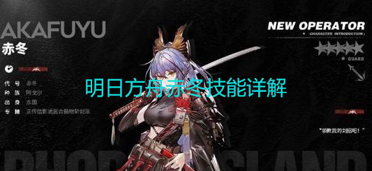 明日方舟赤冬技能怎么样?明日方舟五星近卫赤冬是和老爷子有着相近的模板,不能被奶但能自奶,具体技能组是什么样呢?下面就为大家带来详细的攻略介绍,一起来看看吧!明日方舟赤冬技能详情赤冬攻略[新增干员]//赤冬“赤冬,剑士,最强的那种!我的刀?无论在哪,我都不会放下刀!哈哈,怕了的话躲远一些!”赤冬,东国剑士,信影流居合据物斩剑法传人!经人介绍来到罗德岛,很快甲板晨练小分队便新增了剑道课程!热衷于邀请部