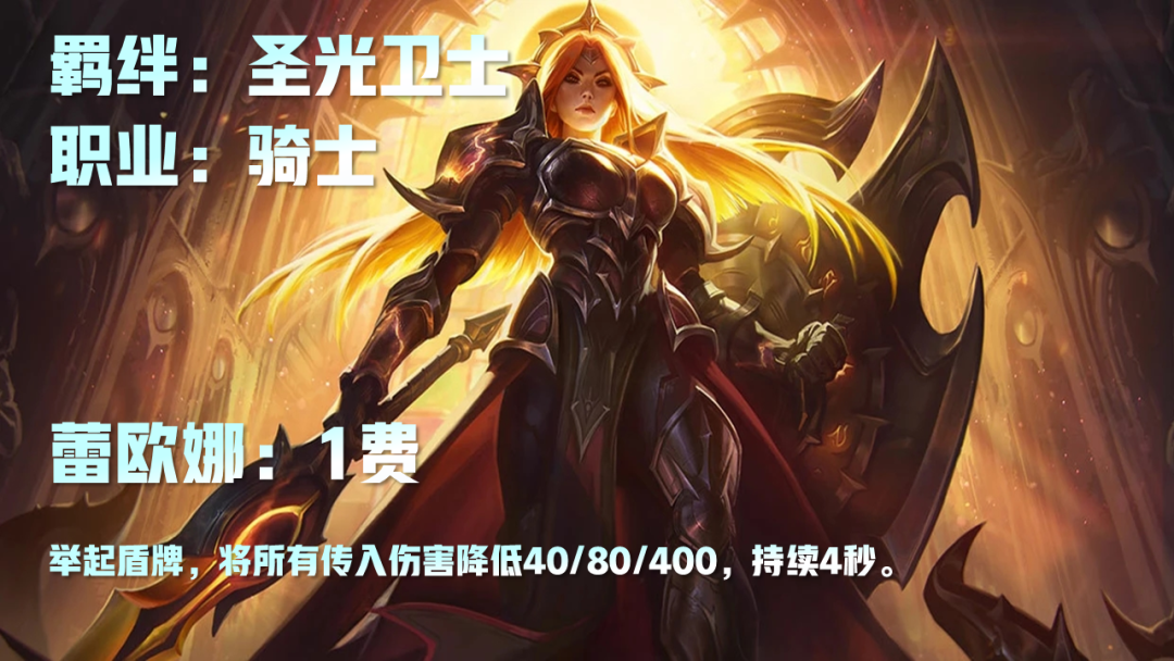 云顶之弈s5蕾欧娜技能及羁绊是什么?全新的S5赛季将开启,可能很多的小伙伴们都想要提前了解一下关于蕾欧娜这一角色在新赛季里面的变动,为了帮助大家更快的了解这一游戏角色在全新的赛季里面的相关信息,小编专门为大家整理出了相关的数据,希望大家会喜欢!云顶之弈s5蕾欧娜技能及羁绊介绍蕾欧娜1费英雄羁绊:圣光卫士,骑士技能:蕾欧娜举起盾牌,降低40/80/400点受到的所有伤害,持续4秒!以上就是本期小编为