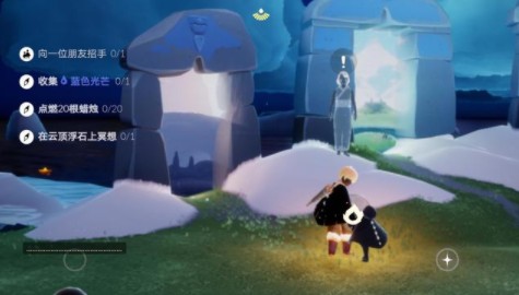 光遇3月9日云顶符石冥想点在哪儿?可能很多的小伙伴还不是很清楚!熟悉这款游戏的小伙伴们应该都很清楚,则款游戏的每日任务是一直在变化的,今天的任务除了收集蜡烛以外,还有很多其他的任务,玩家还要找到蓝色光芒,并且在云顶浮石上进行冥想,任务的详细内容请参考下方小编带来的攻略!光遇3月9日收集蜡烛以及在云顶浮石上冥想攻略1.向一位朋友招手!2.收集蓝色光芒!3.点燃20根蜡烛!4.在云顶浮石上冥想!任务1